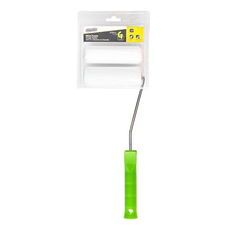 Mini foam rollers. With roller handle and a two flocked roller sleeves.