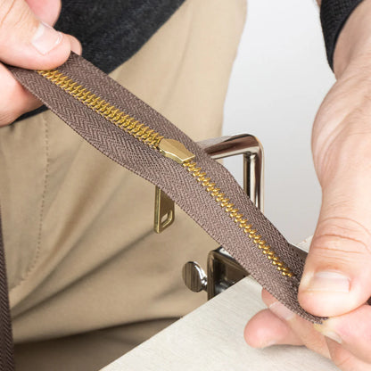 No more struggling with zippers! This zipper jig holds zipper slider in place so you can easily insert zipper tape on each side without puckering. The lower clamp securely holds zipper jig to your work bench. Upper clamp is used for locking jig rod in any direction. Also allows you to put zipper on backwards.